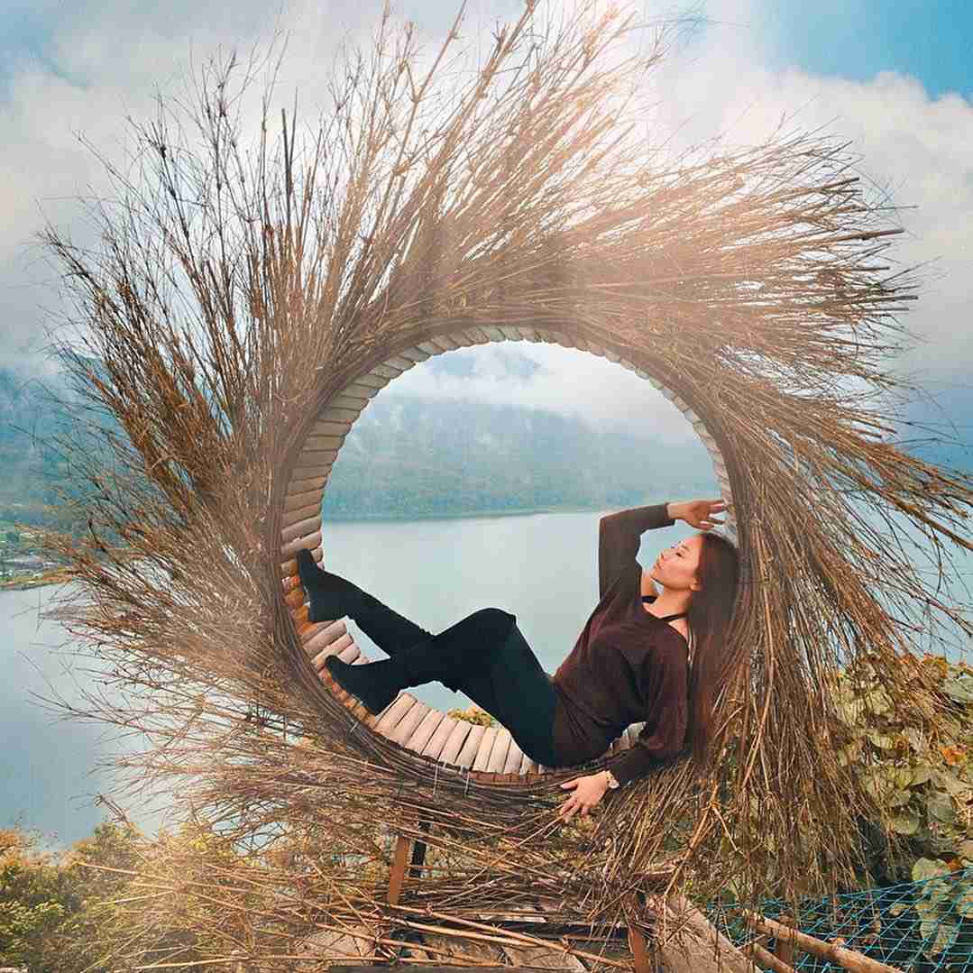 Beberapa spot foto yang tersedia di sini sangat kece - kece banget seperti spot foto sarang burung, gardu cinta, gardu bunga matahari, lingkarang kayu, gardu pandang kapal, juga yang wow banget nih genk background dari foto kamu yaitu langsung menghadap danau buyan loh pokoknya indah banget.