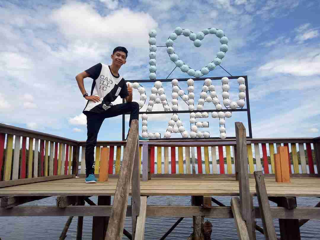 Salah satu spot foto yang wajib kamu coba adalah jembatan kayu dan bambu yang membentuk simbol cinta spot ini biasanya ramai untuk di jadikan spot berfoto anak muda, ataupun kamu juga bisa mencoba hiasan yang di lengkapi bebungaan yang berada di sekitaran danau laet.