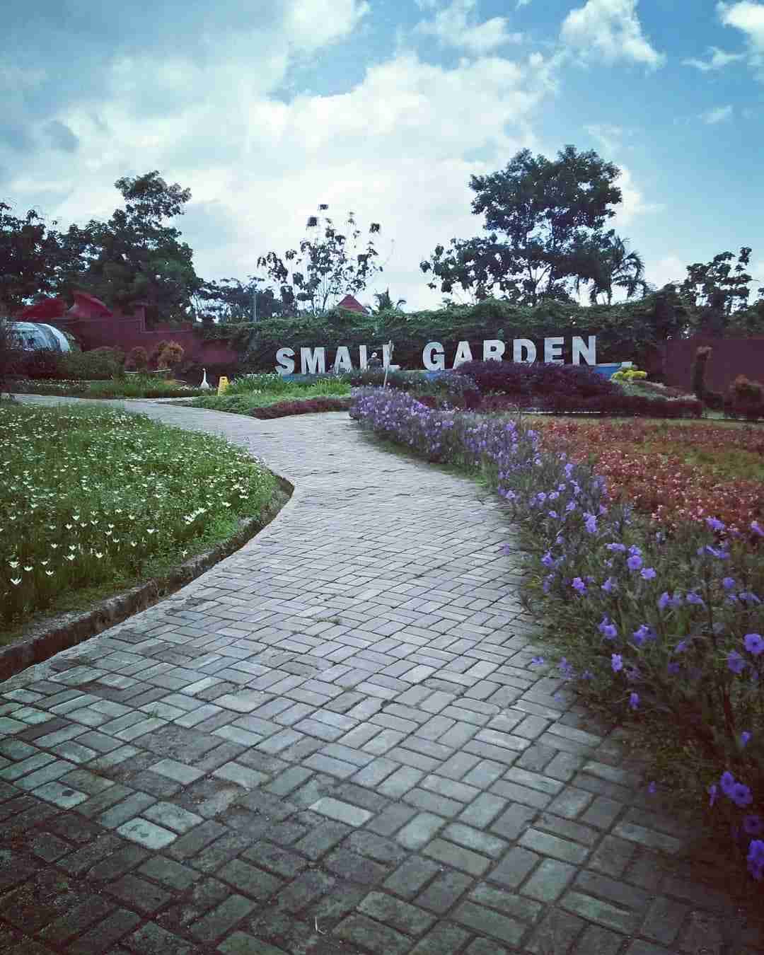 Selain wahana - wahana foto landmark dunia di small world kamu juga bisa mampir ke small garden yang menghadirkan berbagai tanaman bunga - bunga yang cantik, di depan small garden kamu bisa berfoto ria dengan gerbang unik yang berbentuk bunga Raflesia Arnoldi. jika kamu suka berburu foto selfie maka small garden bisa kamu manfaatkan. tanaman bunga di sini ada berbagai jenis mulai dari mawar, sakura, celosia, dan lainnya.