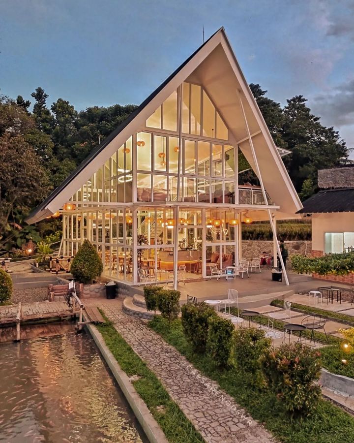 bangunan amani cafe bogor ini cukup unik dan menarik yaitu berdesain Glass House dengan di dominasi warna putih.