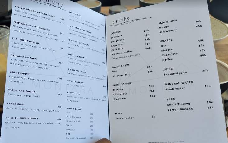 serta tidak ketinggalan juga informasi harga menu makanan montana del cafe dan alamat lengkapnya.