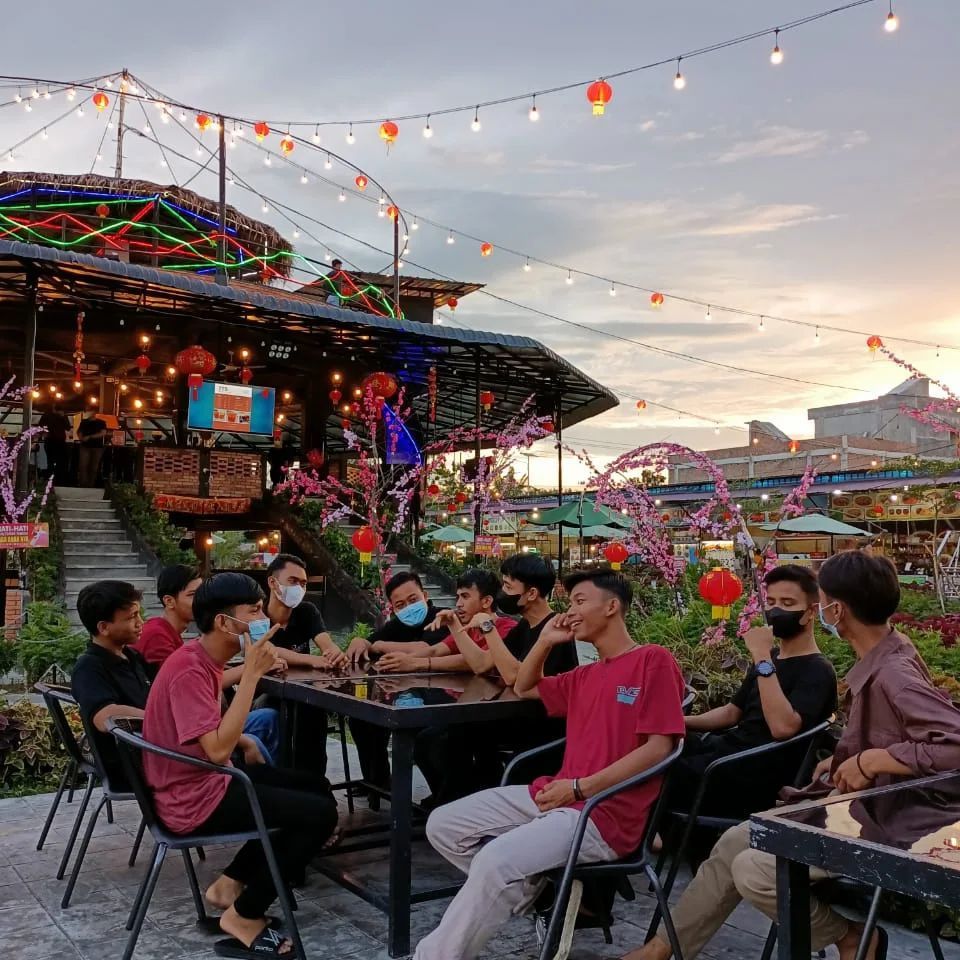 titik temu sergai cafe ini sendiri berkonsep Food Court dimana kamu akan menemukan berbagai stand yang menjual aneka makanan dan minuman.selain itu, tidak ada salahnya juga mengabadikan momen didalam spot yang sudah disediakan diantaranya areal taman, area stand hingga gedung-gedung yang dihiasi dengan lampu-lampu.