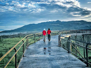 ketika berada di tempat ini, pengunjung bisa berjalan-jalan disebuah jembatan kaca terpanjang di Jawa Barat serta berfoto diatas jembatan dengan latar belakang perbukitan.