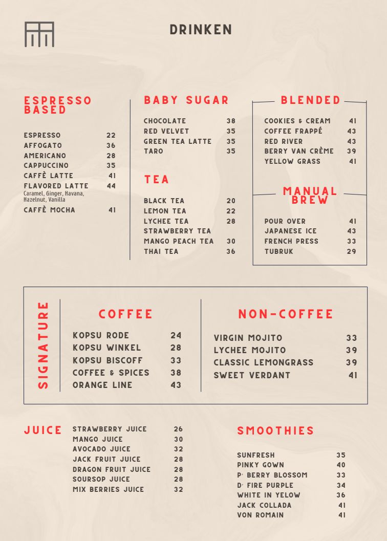 kemudian untuk menu minuman bisa kamu lihat dibawah ini.