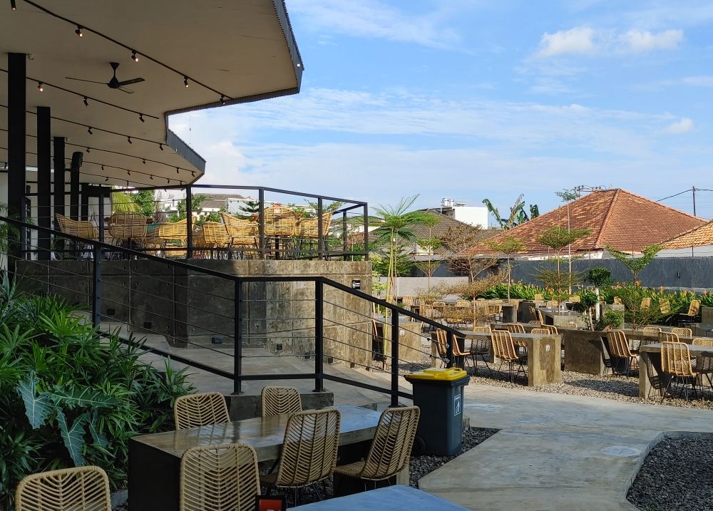 di area semi outdoor ini kamu bisa menikmati menu sembari melihat pemandangan sekitar tanpa terhalang oleh tembok bangunan.